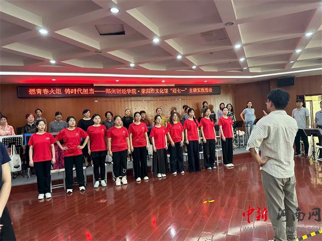 實(shí)踐團(tuán)在文化館與合唱團(tuán)合唱《沒(méi)有共產(chǎn)黨就沒(méi)有新中國(guó)》