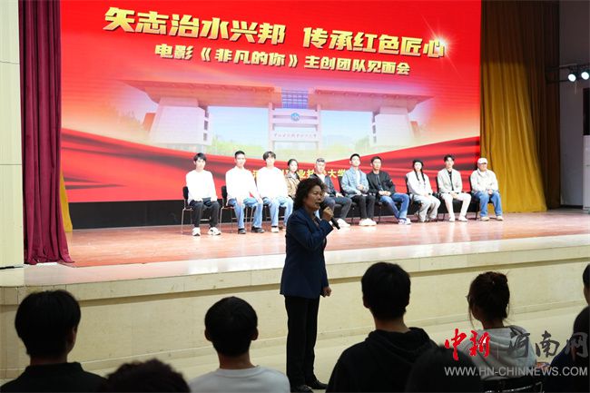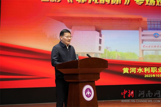 劉林亞致辭。他指出,省教育廳始終將“強化思政引領(lǐng)、推動產(chǎn)教融合、培育特色名校”作為工作重點,持續(xù)為高校高質(zhì)量發(fā)展保駕護航。電影《非凡的你》以紅旗渠設(shè)計師、黃河水利職業(yè)技術(shù)大學杰出校友吳祖泰為原型,生動詮釋了紅旗渠精神,為全省高校開展紅色思政教育提供了一部鮮活的“教材”。希望黃河水利職業(yè)技術(shù)大學以本次活動為契機,進一步把紅旗渠精神融入辦學治校、教書育人全過程,培養(yǎng)更多像吳祖泰一樣“有理想、敢擔當、能吃苦、肯奮斗”的新時代水利人;希望全省高校以《非凡的你》為范例,探索更多“藝術(shù) + 思政”“行業(yè)+育人”新路徑,讓思政育人更有溫度、更接地氣、更入人心;也希望青年學子們從影片中汲取“不認命、不服輸”的力量,把個人理想融入國家發(fā)展大局,在技能報國、強國建設(shè)的征程中,書寫屬于自己的“非凡”篇章。