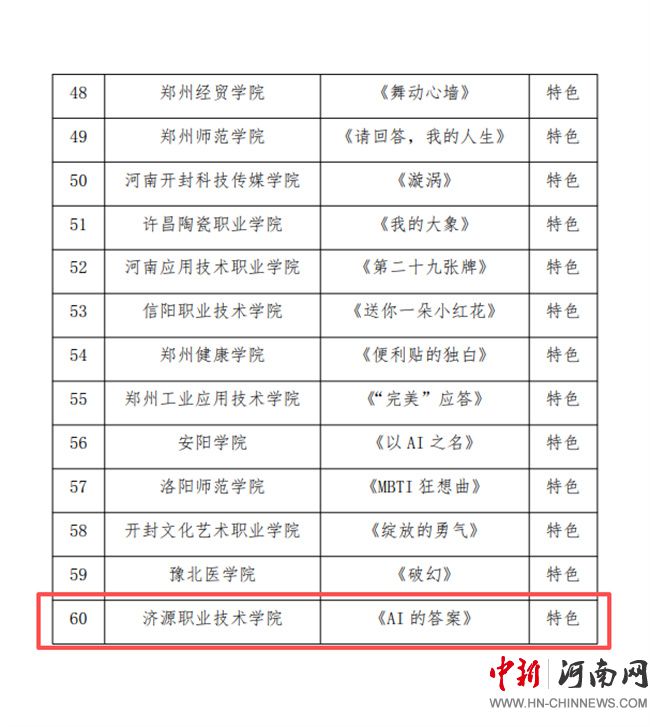 中新河南網(wǎng)10月21日電(張亞麗) 近日,省委教育工委、省教育廳公布了2025年全省高校心理情景劇作品征集活動遴選結(jié)果。濟源職業(yè)技術(shù)學院選送作品《AI的答案》被評為特色作品。