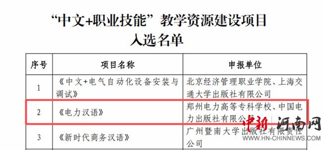 鄭州電力高等?茖W(xué)校教材入選教育部中外語(yǔ)言交流合作中心“中文+職業(yè)技能”教學(xué)資源
