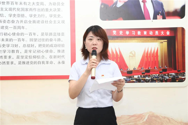 黨委宣傳部部長楊建偉介紹黨史學(xué)習(xí)教育紅色長廊