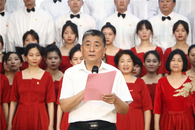 校黨委書記李國強致開幕詞并宣布比賽開幕。他指出,在建黨100周年即將來臨之際,我們在這里隆重集會,放聲齊唱紅色經(jīng)典歌曲,共同回顧黨的百年波瀾壯闊的光輝歷史,熱烈慶祝中國共產(chǎn)黨百年華誕,熱情謳歌黨帶領(lǐng)全國各族人民實現(xiàn)中華民族偉大復(fù)興中國夢的奮斗歷程,共同表達(dá)我們對黨的無限忠誠和對祖國的無限熱愛。在此,我代表學(xué)校黨政領(lǐng)導(dǎo)班子,向全校2000多名共產(chǎn)黨員和全體師生員工表示親切的問候,向為此次紅歌合唱比賽付出辛勤勞動的老師們表示衷心的感謝。
