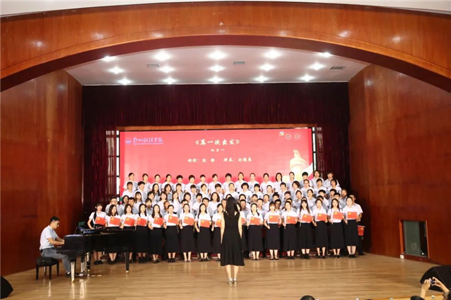 學(xué)校15個分工會積極籌備、精心準(zhǔn)備,組成了10支百人團(tuán)隊,以100的寓意來紀(jì)念黨的百年華誕,表達(dá)了全體教職工一心向黨、忠誠愛黨的紅色情懷。老師們利用課余時間學(xué)紅歌、練紅歌、唱紅歌,一場由全體教職工參與的、滿載著鄭財人家國情懷的紅歌比賽精彩呈現(xiàn)。