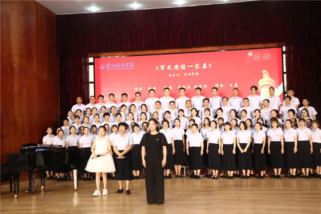 機關(guān)二和管理學(xué)院合唱團(tuán)帶來的歌曲《軍民團(tuán)結(jié)一家親》,由校長于向英和時邇恬小朋友領(lǐng)唱,歌曲回顧了黨的百年光輝歷程中,“軍愛民,民擁軍”的光榮傳統(tǒng),勾勒了一幅幅溫暖的軍民團(tuán)結(jié)一家親的和諧畫面。