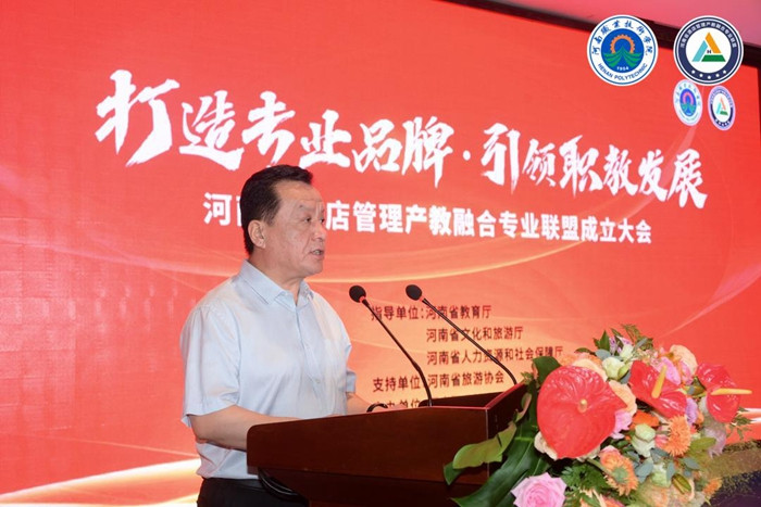 李海龍?jiān)谥罗o中對(duì)聯(lián)盟的成立表示祝賀,對(duì)學(xué)校堅(jiān)持把產(chǎn)教融合、校企合作和國際交流作為驅(qū)動(dòng)學(xué)校創(chuàng)新發(fā)展的“雙動(dòng)能”“雙引擎”,不斷提升人才培養(yǎng)質(zhì)量給予充分肯定。他指出,聯(lián)盟的成立是河南省高度重視和認(rèn)真完成黨的十九大報(bào)告中提出的深化產(chǎn)教融合重大改革任務(wù)的重要舉措,也是促進(jìn)教育和產(chǎn)業(yè)體系人才、智力、技術(shù)、資本、管理等資源要素集聚融合、優(yōu)勢(shì)互補(bǔ),打造支撐高質(zhì)量發(fā)展的新引擎。他表示,省人社廳一直高度重視產(chǎn)教融合、校企合作,盡力為河南職業(yè)教育產(chǎn)教融合提供政策支持。他希望,聯(lián)盟要激發(fā)創(chuàng)新活力、探索新發(fā)展新模式,要促進(jìn)互助共贏、共同推動(dòng)產(chǎn)業(yè)協(xié)同發(fā)展,要發(fā)揮示范引領(lǐng)作用、打造專業(yè)優(yōu)質(zhì)特色品牌,為高校、企業(yè)之間進(jìn)一步交流合作搭建良好平臺(tái),為專業(yè)發(fā)展緊密對(duì)接國家重大戰(zhàn)略需求、支撐區(qū)域經(jīng)濟(jì)引領(lǐng)新發(fā)展提供重要路徑,共同助力文旅產(chǎn)業(yè)產(chǎn)教融合的高質(zhì)量發(fā)展,為中原崛起、河南振興做出更大更有力的貢獻(xiàn)。