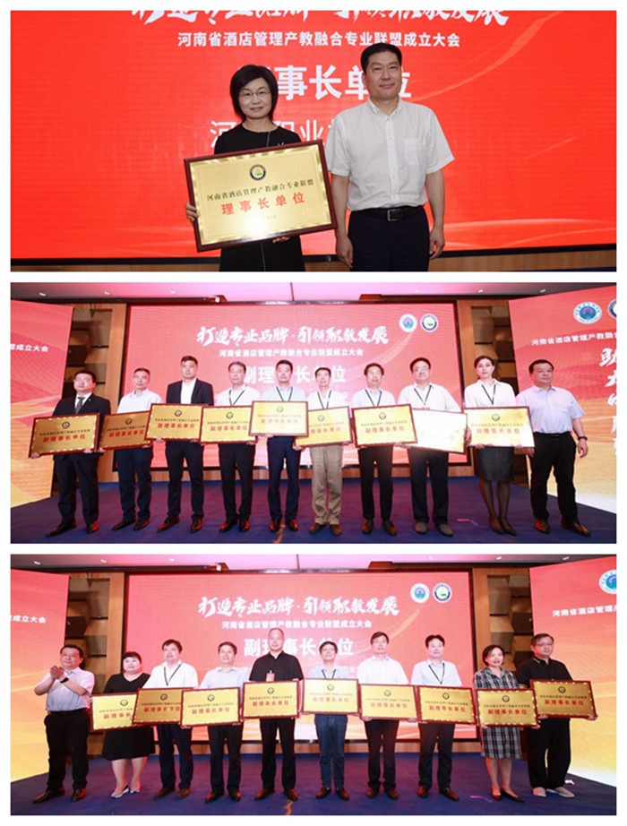 大會(huì)表決通過了河南職業(yè)技術(shù)學(xué)院為理事長單位,黃河水利職業(yè)技術(shù)學(xué)院、河南工業(yè)職業(yè)技術(shù)學(xué)院、河南農(nóng)業(yè)職業(yè)學(xué)院、鄭州鐵路職業(yè)技術(shù)學(xué)院、許昌職業(yè)技術(shù)學(xué)院、河南經(jīng)貿(mào)職業(yè)學(xué)院、河南交通職業(yè)技術(shù)學(xué)院、鄭州旅游職業(yè)學(xué)院、洛陽職業(yè)技術(shù)學(xué)院、河南質(zhì)量工程職業(yè)學(xué)院、濮陽職業(yè)技術(shù)學(xué)院、焦作工貿(mào)職業(yè)學(xué)院、中國旅游出版社、河南省黃河迎賓館、鄭州建國飯店、上海富悅大酒店、杭州開元蕭山賓館、河南酒店網(wǎng)為副理事長單位,與會(huì)領(lǐng)導(dǎo)為理事長單位、副理事長單位進(jìn)行了授牌。