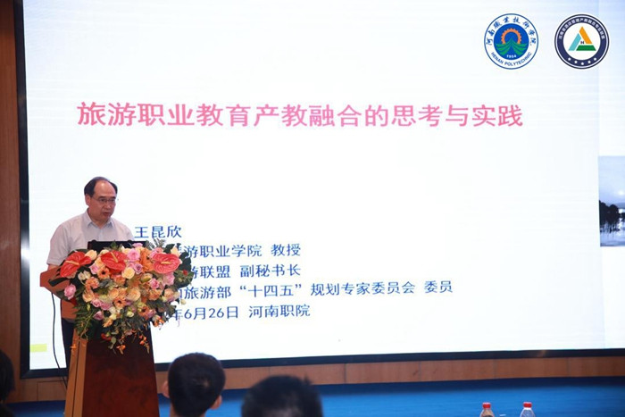 在大會(huì)主題分享階段,學(xué)校領(lǐng)導(dǎo)為受聘專家頒發(fā)了聘書。王昆欣教授作了題為“旅游職業(yè)教育產(chǎn)教融合的思考與實(shí)踐”的主題分享,他從職業(yè)教育產(chǎn)教融合的發(fā)展歷程、特點(diǎn)與問題、要求與變化、實(shí)踐與探索等四個(gè)方面,分享了旅游職業(yè)教育產(chǎn)教融合的思考與實(shí)踐,受到了與會(huì)嘉賓的一致好評(píng)。