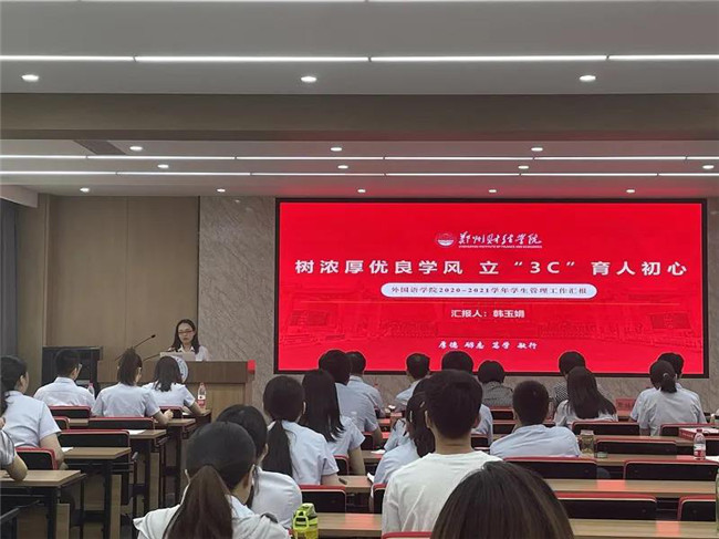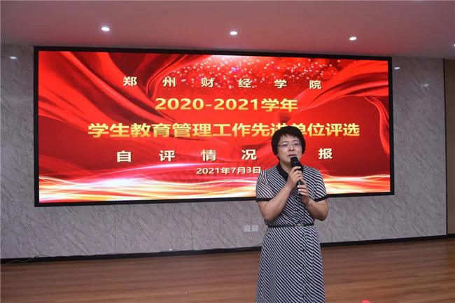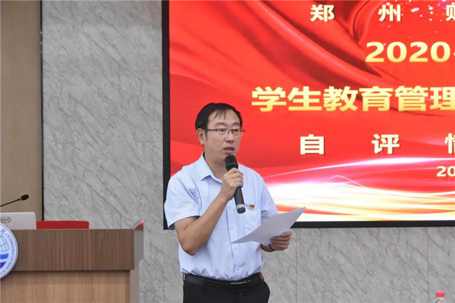 陳志強(qiáng)宣布2020-2021學(xué)年學(xué)生教育管理工作先進(jìn)單位評(píng)選自評(píng)情況匯報(bào)會(huì)正式開始。各二級(jí)學(xué)院匯報(bào)人按抽簽順序依次上臺(tái),按照量化考核標(biāo)準(zhǔn)要求,從學(xué)生工作管理方法,思想政治教育,日常行為管理和特色文化活動(dòng)等多個(gè)方面匯報(bào)了本學(xué)院一學(xué)年來的學(xué)生管理工作成果。