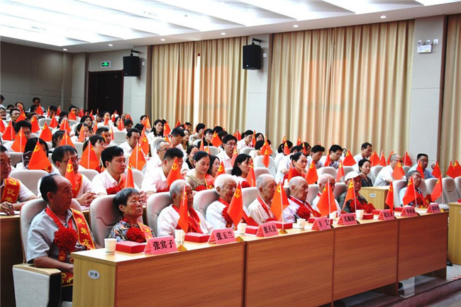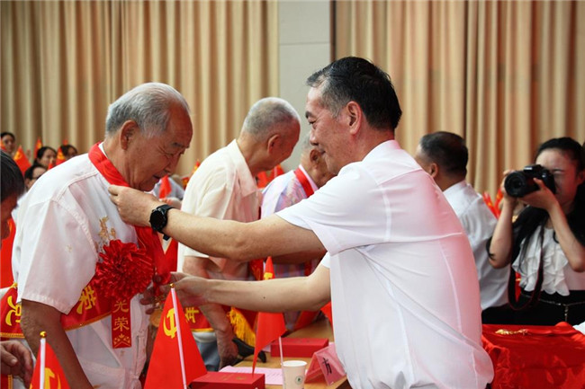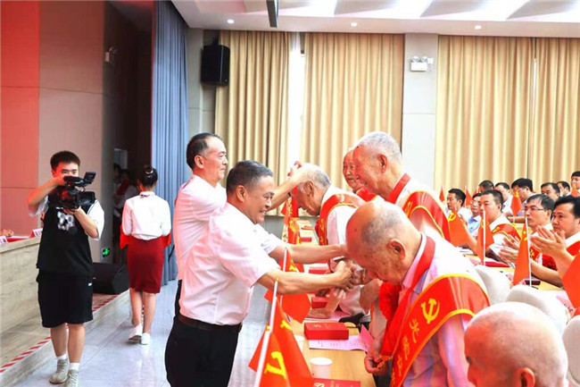 馮慰冬和宋宏偉一起走到臺(tái)下為“光榮在黨50年”老黨員代表逐一佩戴紀(jì)念章,并向老同志們表示誠(chéng)摯的敬意。