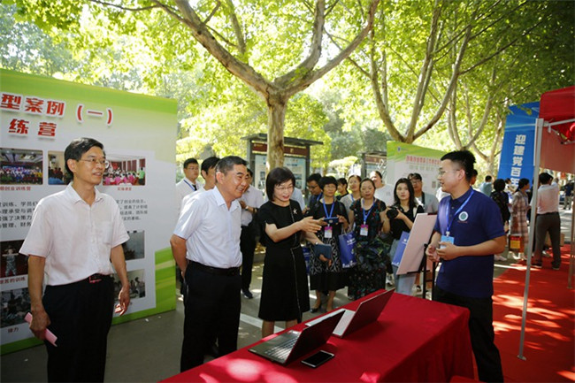 開幕式結(jié)束后,與會領(lǐng)導(dǎo)一同參觀了“迎建黨百年華誕 展職教雙創(chuàng)風(fēng)采”河南省職院校創(chuàng)新創(chuàng)業(yè)教育成果展。