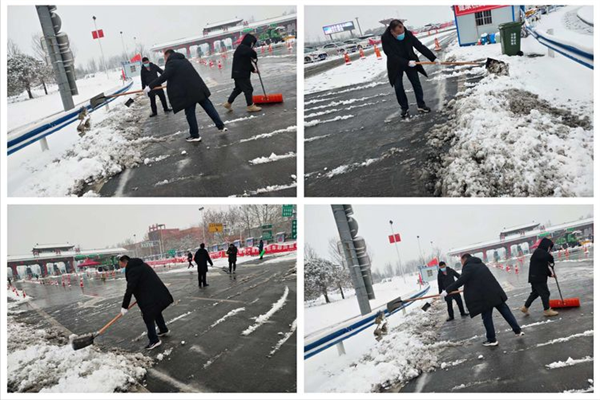 全鄉(xiāng)黨員干部利用鐵锨、掃帚等勞動工具,鏟的鏟,掃的掃,熱火朝天地開展掃雪活動。鄉(xiāng)黨政領(lǐng)導(dǎo)更是以身作則,身著“五色彩衣”紛紛在分包社區(qū)交通健康檢測點開展掃雪活動,大家熱情高漲,形成了嚴(yán)寒冬日里一道靚麗的風(fēng)景線,經(jīng)過清掃,被冰雪覆蓋的路面一掃而凈,保持了道路暢通,極大方便了群眾的安全出行。