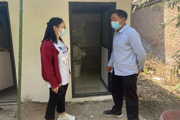 杏花營農(nóng)場紀(jì)委工作人員同社區(qū)干部現(xiàn)場交流戶廁改造工作