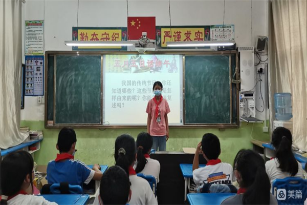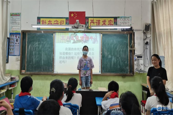 活動(dòng)中,富平社區(qū)村委人員利用PPT追溯端午節(jié)的由來,給大家講述屈原的故事,讓同學(xué)們明白端午節(jié)不只是粽子節(jié)、龍舟節(jié),更是民族節(jié)、愛國節(jié)。同時(shí),蘆校長還向同學(xué)介紹有關(guān)端午懸掛艾草、佩香囊、賽龍舟、吃粽子等各地不盡相同的民風(fēng)習(xí)俗。最后,同學(xué)們還學(xué)習(xí)了端午節(jié)的相關(guān)詩詞,進(jìn)一步了解了端午節(jié)的來歷、習(xí)俗等,從而感受我國傳統(tǒng)佳節(jié)的獨(dú)特魅力。