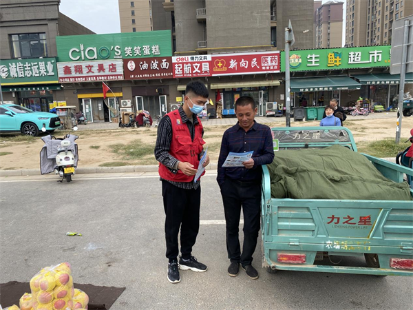 中新河南網(wǎng)10月14日電:為了提升居民防范意識(shí),營(yíng)造和諧美麗,平安法制社會(huì)環(huán)境,10月14日,開封市示范區(qū)杏花營(yíng)農(nóng)場(chǎng)普法宣傳小隊(duì)在海西社區(qū)沿街門店開展青年普法宣傳活動(dòng)。