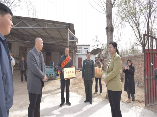 喜報(bào)送上門 擁軍暖人心---開封市示范區(qū)杏花營農(nóng)場為榮立“三等功”現(xiàn)役軍人家庭送喜報(bào)