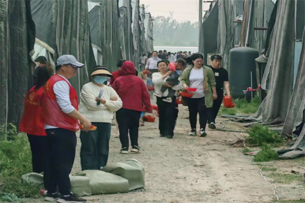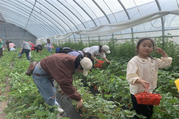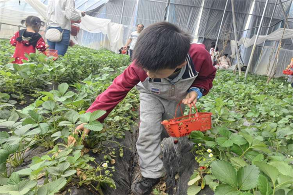 隨后大家在草莓園管理人員的帶領(lǐng)下有序走進(jìn)大棚,陣陣清香撲鼻而來,茂密的草莓枝葉映入眼簾,簇簇綠葉間點(diǎn)綴著一顆顆鮮紅飽滿的果實(shí),令人垂涎欲滴。居民們提著籃子穿梭于壟溝之間,拍照打卡、挑選草莓、親近自然,盡情享受愜意的休閑時(shí)光。