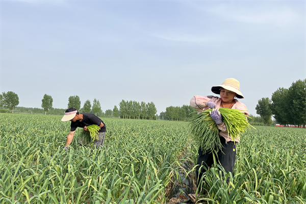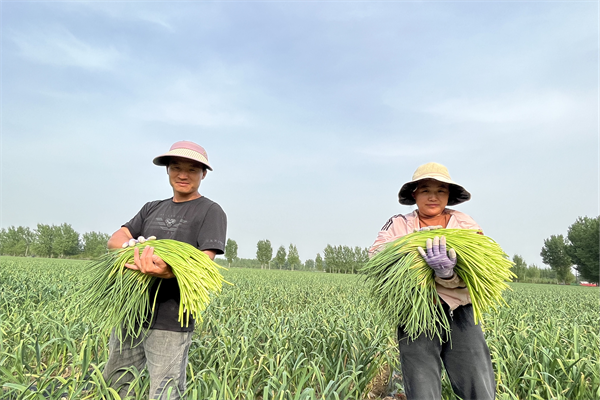 杏花營(yíng)農(nóng)場(chǎng)大蒜種植歷史悠久,村民種植大蒜經(jīng)驗(yàn)豐富,且依托獨(dú)特的土壤優(yōu)勢(shì),種出的大蒜具有個(gè)頭大、口感好、耐儲(chǔ)存等特點(diǎn),深受市場(chǎng)歡迎。每年4月份采收蒜薹,5月份蒜頭就能成熟收獲,每畝大蒜純收入達(dá)5000多元。大蒜產(chǎn)業(yè)不僅讓蒜農(nóng)鼓了腰包,也讓村民輕松實(shí)現(xiàn)了家門口“就業(yè)”,進(jìn)一步拓寬了農(nóng)民就業(yè)增收渠道。