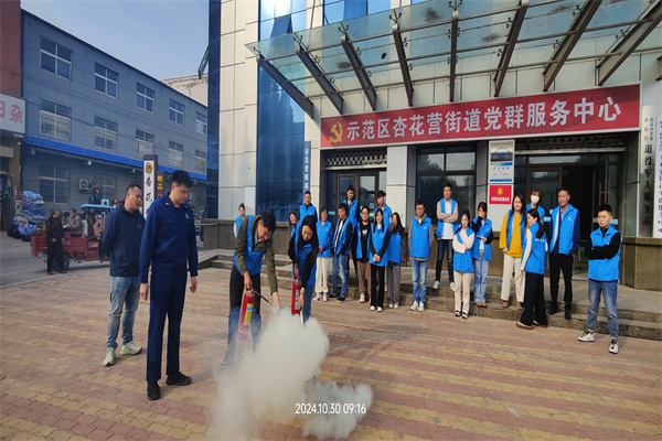 此次培訓(xùn)邀請街道應(yīng)急管理所、杏花營消防隊現(xiàn)場進行了知識培訓(xùn)及消防演練。