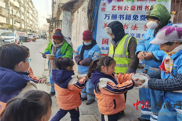 中新河南網(wǎng)12月20日電:人間小團圓,冬至大如年。為了感謝環(huán)衛(wèi)工人的辛勤付出,12月20日上午,開封市順河回族區(qū)曹門街道樂觀社區(qū)牽手回族幼兒園,開展“冬至送溫暖 關愛環(huán)衛(wèi)工”志愿服務活動,讓環(huán)衛(wèi)工人感受到冬日的一份溫暖,助推“幸福和諧星”創(chuàng)建。