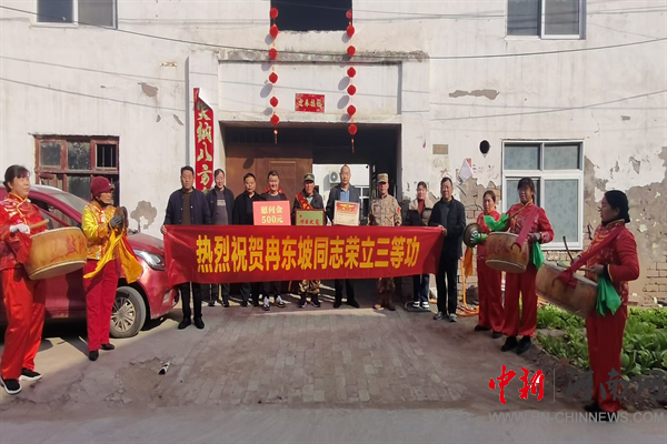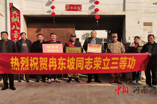 中新河南網(wǎng)2月18日電:“一人立功,全家光榮”,2月18日,開(kāi)封市示范區(qū)杏花營(yíng)農(nóng)場(chǎng)黨委政府到西網(wǎng)社區(qū)為榮獲“三等功”的現(xiàn)役軍人冉東坡家庭送上立功喜報(bào)和慰問(wèn)金,讓立軍功的榮譽(yù)與溫情浸潤(rùn)軍民心田。
