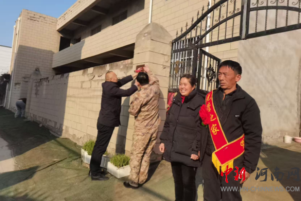 中新河南網(wǎng)12月17日電:為弘揚擁軍優(yōu)屬、擁政愛民的優(yōu)良傳統(tǒng),營造“一人參軍,全家光榮”的濃厚社會氛圍,2025年12月17日上午,開封市示范區(qū)杏花營農(nóng)場退役軍人服務(wù)站聯(lián)合場武裝部走進(jìn)秋季入伍新兵家中,親手懸掛“光榮之家”牌匾,用實際行動向他們送去黨和政府的關(guān)懷和敬意。