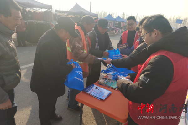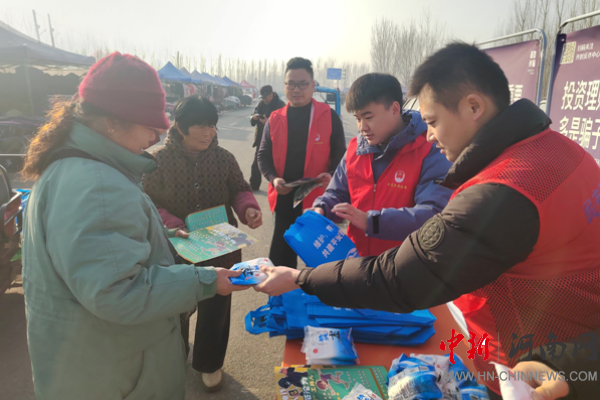 開封市示范區(qū)杏花營農(nóng)場綜治中心在農(nóng)場集市開展反電詐宣傳活動