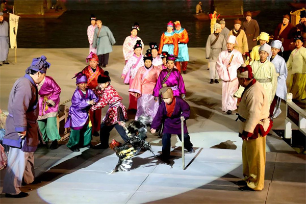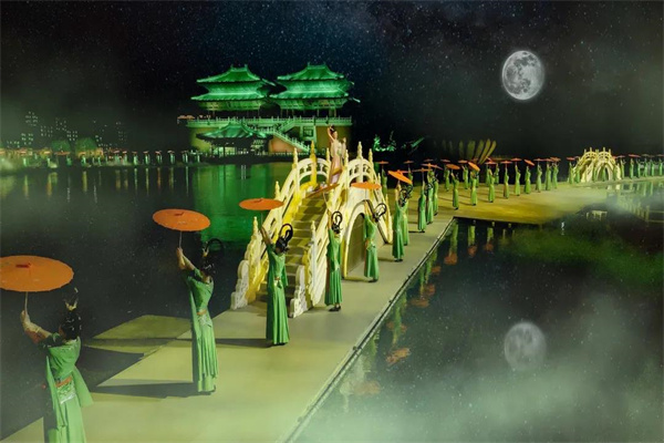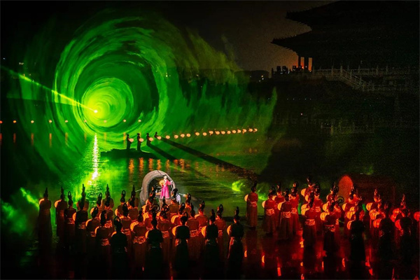 整場演出橫跨景龍湖面,殿宇、橋廊、水面、船只都是演出舞臺。場面宏大,令人為之驚嘆!畫面震撼,令人拍手稱贊!