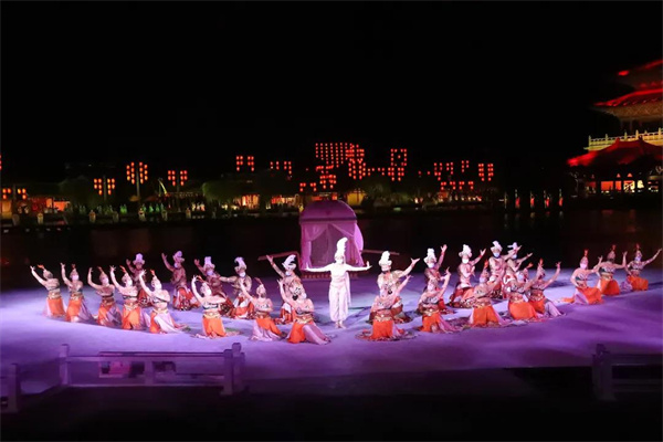 整場演出運用大量的科技手段,制造出夢幻的效果,把人們的記憶拉向一千多年前的那個輝煌朝代。