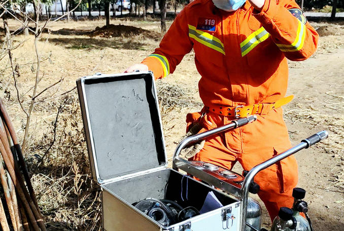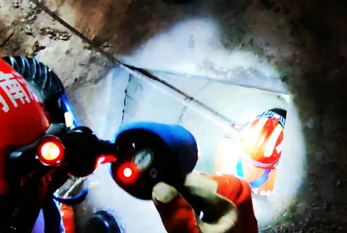 救援人員首先使用移動供氣源向井內輸送氧氣,保持井底氧氣充足,救援小組設置安全保護裝置、并清理井口雜物,為下井救援人員提供安全保障。