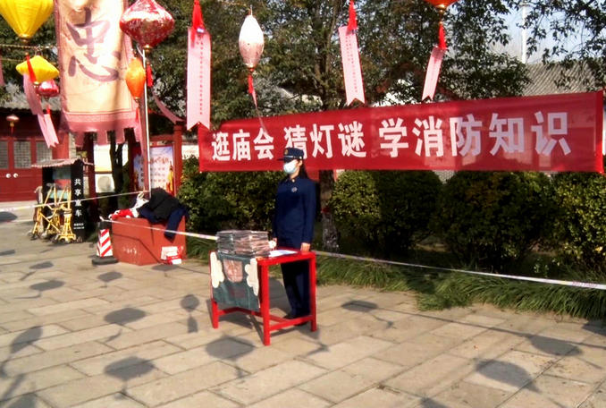 廟會(huì)現(xiàn)場(chǎng),設(shè)置猜燈謎專(zhuān)區(qū),100余條以消防器材、火災(zāi)預(yù)防、火災(zāi)撲救、火災(zāi)逃生等消防安全知識(shí)為內(nèi)容的燈謎激發(fā)了游客們的濃厚興趣。