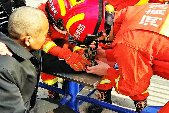 經(jīng)過一番精密細(xì)致地操作之后,救援人員成功將戒指破拆取下。