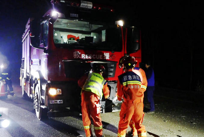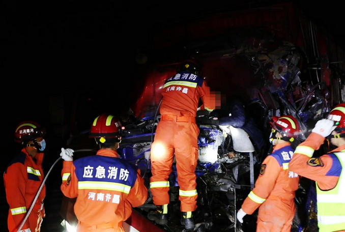 河南鄢陵:占道行駛導(dǎo)致兩輛貨車相撞 消防隊(duì)員迅速趕赴破拆救援