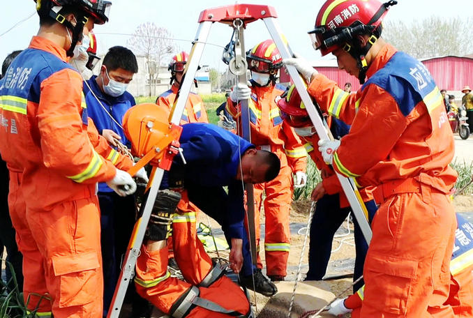 河南鄢陵:老人務(wù)農(nóng)不慎墜入灌溉機(jī)井 消防隊(duì)員實(shí)施索降成功救援