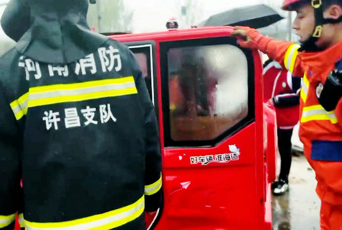河南禹州:三輪車誤入水坑致兩人被困 消防隊(duì)員迅速趕赴現(xiàn)場(chǎng)救援