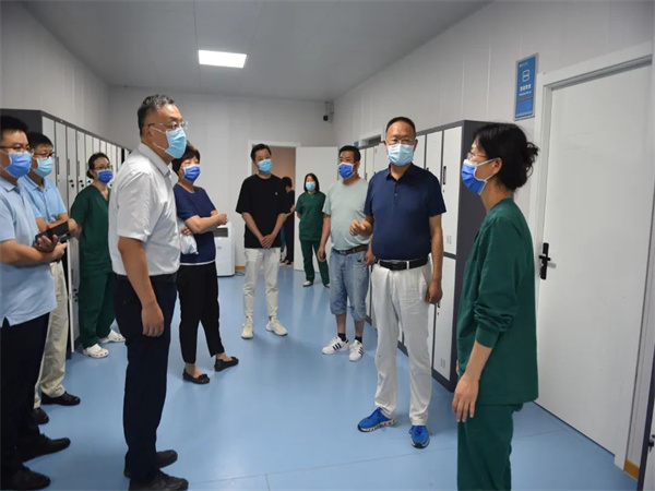 7月30日,院長(zhǎng)李華強(qiáng)、副院長(zhǎng)錢偉軍帶領(lǐng)醫(yī)務(wù)部、護(hù)理部、感控科、總務(wù)科、黨辦、院長(zhǎng)辦公室等部門負(fù)責(zé)同志慰問核酸檢測(cè)基地工作人員,實(shí)地了解基地工作開展情況。