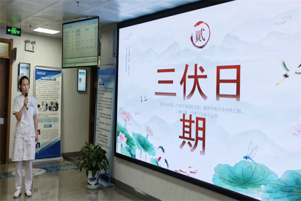 陳晶晶護士為大家講解了“二十四節(jié)氣之三伏天”的相關內(nèi)容,何為三伏天,三伏天的氣候特點、三伏日期、最熱原因,以及三伏天的養(yǎng)生方法,包括飲食、伏貼、伏灸、禁忌以及防暑小常識,引起了大家的濃厚興趣。圖片