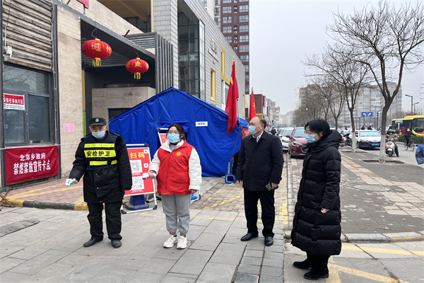 每到一處,胡永生都詳細(xì)了解防控卡點(diǎn)“雙碼”查驗(yàn)、測(cè)溫設(shè)施、信息登記、人車流量、物資保障等疫情防控工作落實(shí)情況,傳達(dá)了院黨組對(duì)疫情防控一線干警的問候。同時(shí),叮囑干警在做好防疫工作的同時(shí)注意自身健康防護(hù),并對(duì)做好春節(jié)期間疫情防控工作提出了要求。