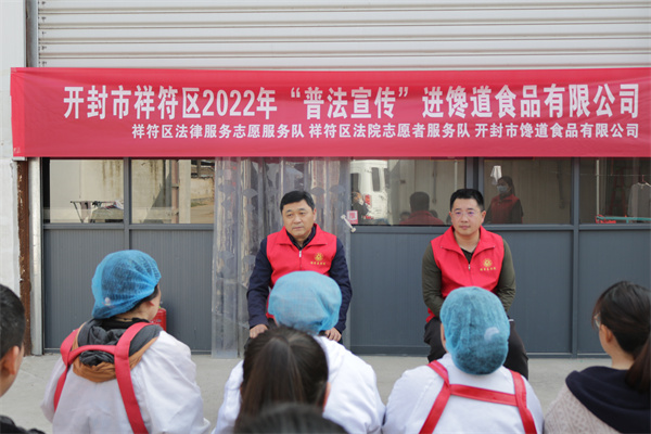 中新河南網(wǎng)3月12日電:為提升干警能力作風建設(shè),進一步增強企業(yè)職工法律意識,強化法治理念,促進企業(yè)健康發(fā)展,2022年3月11日上午,開封市祥符區(qū)法院志愿者在黨組副書記、副院長楊勁松的帶領(lǐng)下,來到開封市饞道食品有限公司,開展了一場別開生面的“普法宣傳”宣傳活動,切實解決了企業(yè)最關(guān)心、最迫切的法律問題。