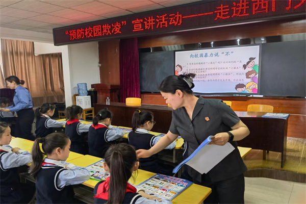 中新河南網(wǎng)5月19日電:為進(jìn)一步強(qiáng)化普法宣傳教育力度,深入開展“我為群眾辦實(shí)事”實(shí)踐活動,以增強(qiáng)學(xué)生的法律意識,營造平安、健康的校園法治氛圍。5月19日,開封市龍亭區(qū)法院法官張碧薇、喬啟東走進(jìn)西門大街小學(xué),開展“預(yù)防校園欺凌”為主題的法治宣講活動。