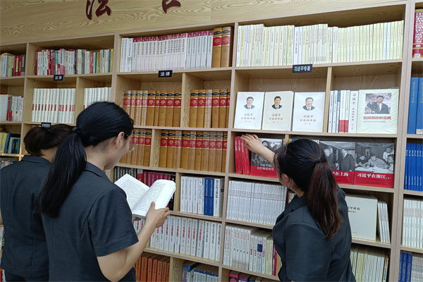 干警閱覽室設(shè)立的“習(xí)近平專著書柜”中所展示的圖書,包括習(xí)近平總書記在正定、在浙江采訪實(shí)錄以及《習(xí)近平的七年知青歲月》中提及的書籍。習(xí)近平總書記專著書籍為廣大黨員、干部深入學(xué)習(xí)領(lǐng)會習(xí)近平新時代中國特色社會主義思想提供了重要參考。