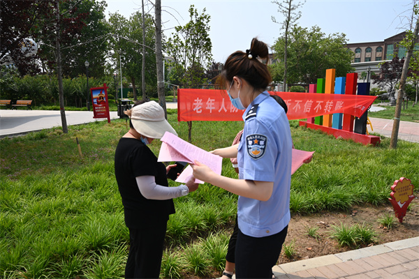 “養(yǎng)老產(chǎn)品別輕信,高息投資不靠譜……”“不信陌生短信,拒接陌生來電,轉(zhuǎn)賬匯款多多警惕……”干警們通過擺放宣傳展板、發(fā)放宣傳資料、現(xiàn)場(chǎng)專題宣講等方式,結(jié)合發(fā)生典型案例,介紹了買賣個(gè)人銀行卡、非法集資、虛假投資充值A(chǔ)PP、刷單返利、冒充公職人員等電信詐騙套路,并重點(diǎn)講解了針對(duì)老年人的各類新型詐騙套路,提醒叮囑老年人要提高法律意識(shí),不要貪圖蠅頭小利,牢記銀行卡密碼不泄露、陌生電話不輕信、帶有鏈接短信不亂點(diǎn)、遇到問題及時(shí)與家人溝通,切實(shí)守好自己的“錢袋子”。
