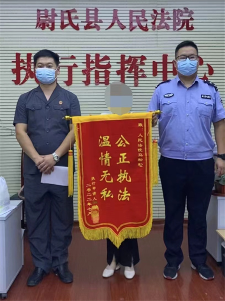 這面印有“公正執(zhí)法,溫情無私”的錦旗,既是對尉氏法院執(zhí)行工作的認(rèn)可,也是對執(zhí)行干警的一份鼓勵。今后,尉氏法院將不斷創(chuàng)新執(zhí)行工作思路,以司法辦案為第一要務(wù),壓實(shí)責(zé)任,抓好落實(shí),加大案件辦理力度,以優(yōu)異成績迎接黨的二十大勝利召開。(張書芳)