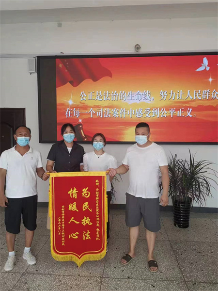 中新河南網(wǎng)8月15日電:8月8日上午,申請(qǐng)執(zhí)行人梁某的兒子將一面寫(xiě)有“為民執(zhí)法、情暖人心”的錦旗送到開(kāi)封市祥符區(qū)法院執(zhí)行局趙龍執(zhí)行團(tuán)隊(duì)執(zhí)行干警潘華俊手中,感激之情溢于言表。