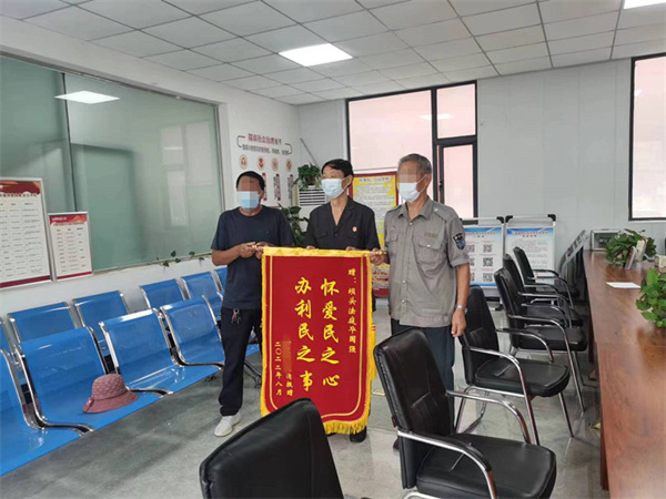 拿到工資的那一刻,孫某等人眼含淚花,將早已準(zhǔn)備好的“懷愛民之心 辦利民之事”的錦旗交到畢國強(qiáng)手中。陳某看到這一幕甚為動(dòng)容。想起這兩年包工的艱辛,看到壩頭鎮(zhèn)政府、法庭等多部門人員為此付出的努力,也不禁流出了眼淚。他把畢國強(qiáng)拉到一邊,指著訴調(diào)中心的標(biāo)語“讓群眾少跑一趟路,讓群眾少花一分錢”動(dòng)情地說:“官司我雖然輸了,但沒有花一分錢訴訟費(fèi),更沒有花冤枉錢,你們還把我工程保證金的事兒捋順了,這事兒處理的,我服。”