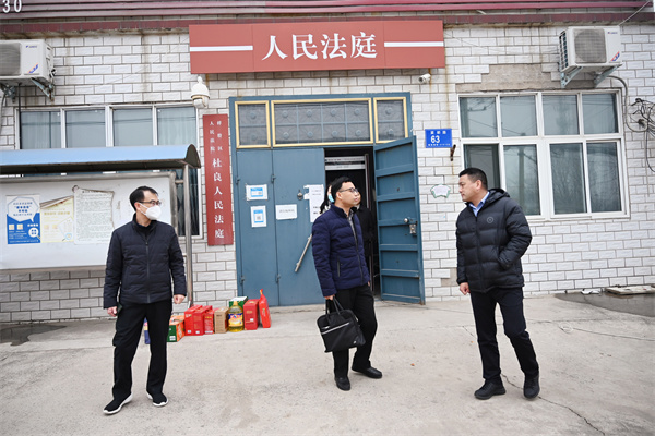 鄧強(qiáng)一行首先來到杜良法庭,認(rèn)真查看了法庭基礎(chǔ)設(shè)施建設(shè)情況,與法庭干警親切交談,詳細(xì)了解法庭人員配置、辦案等情況,并要求在物質(zhì)裝備和技術(shù)保障方面優(yōu)先滿足法庭需要,不斷改善法庭工作環(huán)境和條件,切實(shí)加大對(duì)法庭和法庭干警的關(guān)心關(guān)愛,不斷增強(qiáng)法庭干警的榮譽(yù)感、歸屬感和獲得感。