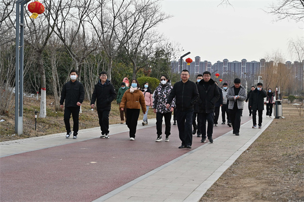 中新河南網(wǎng)1月17日電:在2023年春節(jié)到來之際,為豐富干警文體生活,提升隊(duì)伍身體素質(zhì),倡導(dǎo)綠色低碳健康生活方式,1月16日,開封市蘭考縣法院組織干警在金牛湖公園,開展“綠色生活 健康同行”迎新春健步走活動。