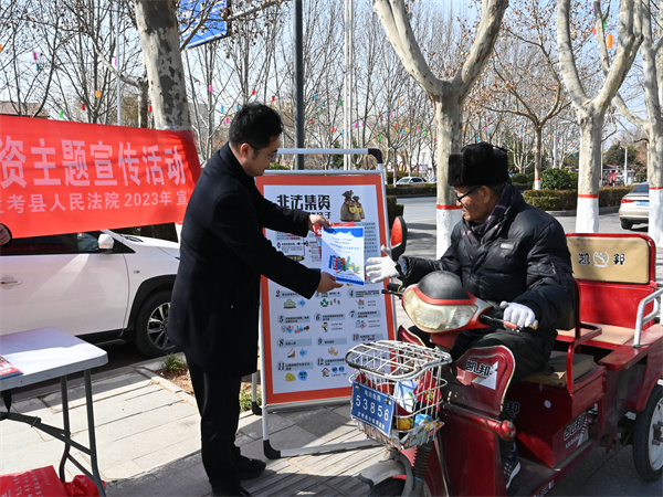 蘭考縣人民法院為保護老百姓的錢袋子,守護好每一個幸福家庭,于2023年2月21日在蘭考縣人民廣場開展非法集資犯罪宣傳活動。