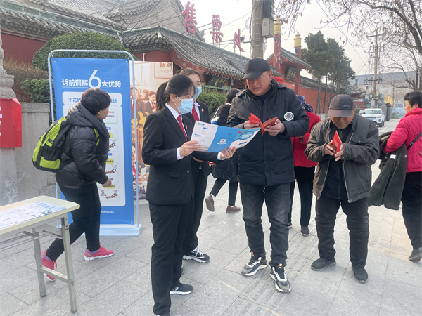 中新河南網(wǎng)2月28日電:為進(jìn)一步推進(jìn)“一站式”多元解紛和訴訟服務(wù)體系建設(shè),使企業(yè)和群眾解決糾紛更加便利、營商環(huán)境更加優(yōu)化。2月28日,開封市鼓樓區(qū)人民法院組織立案庭干警在包公祠門口廣場開展“一站式”建設(shè)普法宣傳活動,并受到外地游客的好評和稱贊。