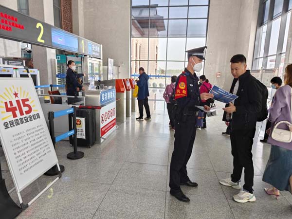 宣傳民警深入候車大廳,向候車旅客發(fā)放宣傳資料并進行面對面講解,圍繞當代國家安全組成領域、總體國家安全觀五大要素和五對關系、國家安全法律制度體系、公民有關維護國家安全的義務和權利、如何辨別危害國家安全的行為及舉報方式等內(nèi)容,上了一堂深入淺出的國家安全教育課,號召大家自覺抵制和防范危害國家安全犯罪行為。本次宣傳活動使廣大旅客充分了解國家安全的重要意義,切實增強其國家安全法治意識,進一步打牢自覺維護國家安全的群眾基礎,警民同心共筑國家安全的鋼鐵長城。(王安瀾)