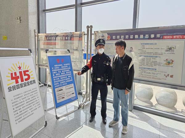 開封北站派出所結(jié)合轄區(qū)工作實際,明確宣傳重點,充分采取多種宣傳手段,在實名制驗票口、候車大廳等人員密集場所設置展板,就國家安全教育日的設立背景和重要意義進行現(xiàn)場宣講;協(xié)調(diào)開封北站客運,通過車站廣告屏幕循環(huán)播放總體國家安全觀公益宣傳片,大力營造濃厚宣傳氛圍。
